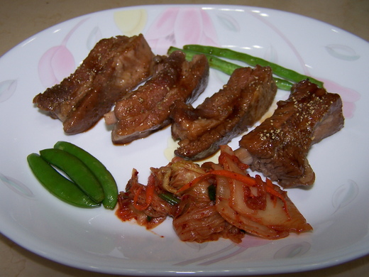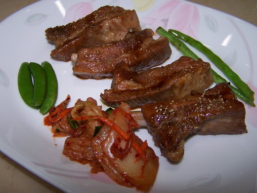 哇~! 泡菜排骨好吃. (其實牛肉我也照吃,因為我有狂犬病,對狂牛有抗體.)