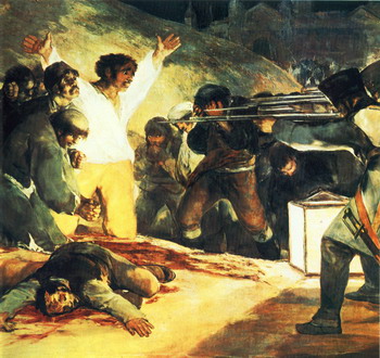 上圖:哥雅(Francisco Goya Y Lucientes)的作品~"5月3日的馬德里",描寫的是民眾反抗濫殺無辜的拿破崙軍隊.