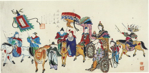 上圖是中國清朝中葉的楊柳青年畫:[齊桓公舉火爵寧戚].