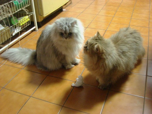 已為是一般的野貓,結果是二隻金吉拉品種的貓。一隻是淺金棕色,一隻是銀灰色。一看還蠻驚豔的,想不到貓可以如此漂亮。人還真是會以貌取人呢,即使是貓,所以以前小時對貓的恐懼,竟然消失無蹤。