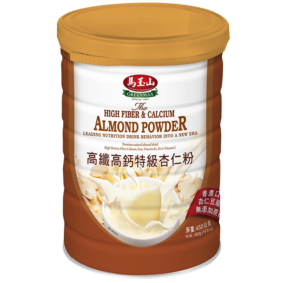 台灣製造 營養豐富br天然杏仁原豆富含膳食纖維br更高纖更高鈣 主商品 高纖高鈣特級杏仁粉450g 5罐 重量 450g 罐 原料 杏仁 植物油粉 葡萄糖漿 完全氫化棕櫚仁油 辛烯基丁