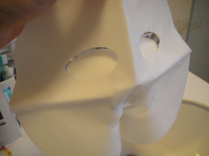 經過20分鐘,可以拿掉面膜囉,還是貼得很密實,皮膚表面沒有水水的感覺,都吸到皮膚裡面去了~~~