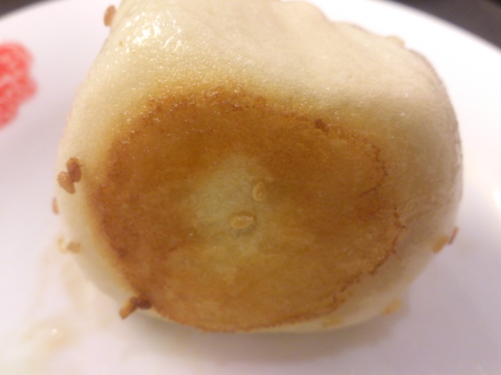 生煎包的下面,煎的酥酥的,口感很好吃~