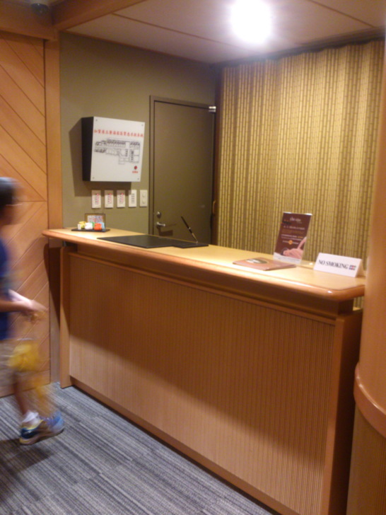 湯屋的接待櫃台,小姐不在,指引的人趕緊去找人