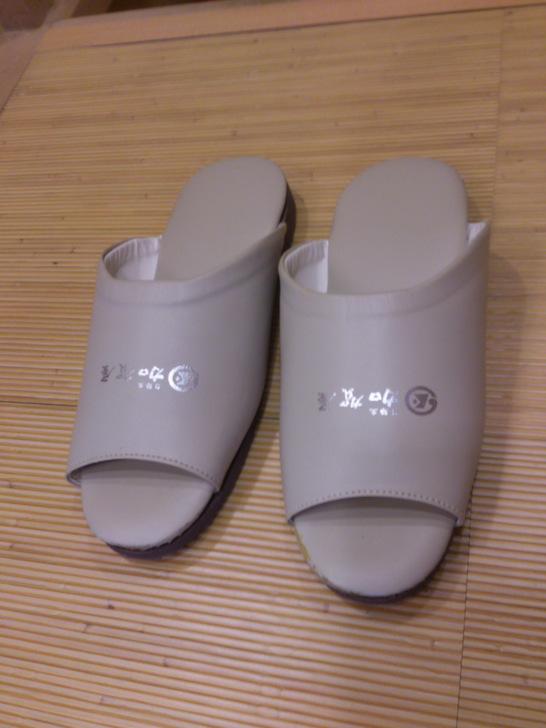 很精緻的拖鞋,但是不太敢穿,如果改成高級的拋棄式拖鞋會更符合台灣民眾的需求吧....