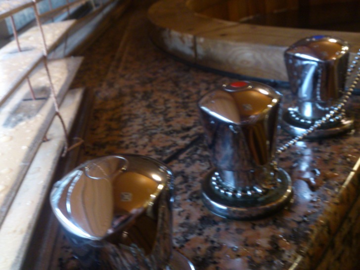 除了冷熱水外還有一個"溫泉水"的水龍頭,但是一開始轉的時候很緊,完全動不了,以為是裝飾,等放到8分滿時,才發現放的是"自來水"......