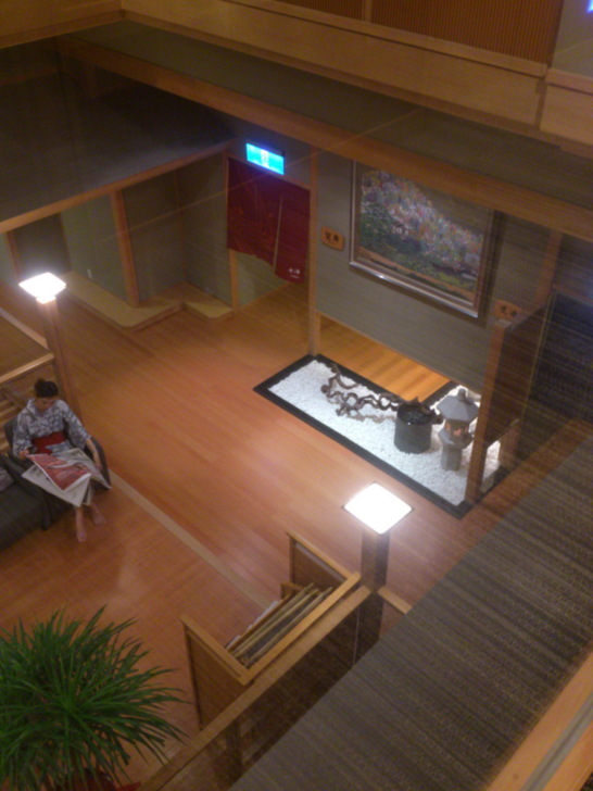 加賀屋建築中間有天井設計,從湯屋出來可以透過玻璃看到樓下