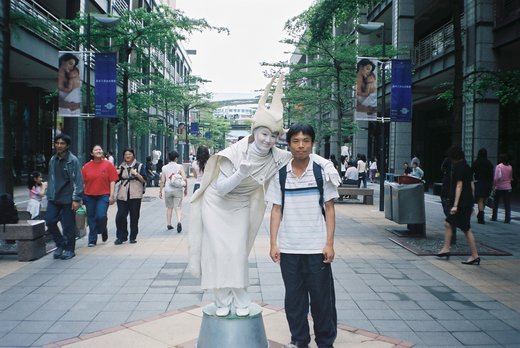到世貿展場,途經新光三越,沿路有許多這種類型的街頭藝人,造型獨具,舞蹈獨創,各有其風格.