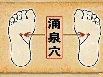 功能:湧泉穴是人體長壽大穴,經常按摩此穴,則腎精充足,耳聰目明,發育正常,精力充沛;同時還能治療多種疾病,如頭痛、中暑、耳鳴等。在湧泉穴處按摩,通過經絡的傳遞作用,能使腎臟產生良好的效應,調節內分泌與植物神經系統,提神醒腦。
