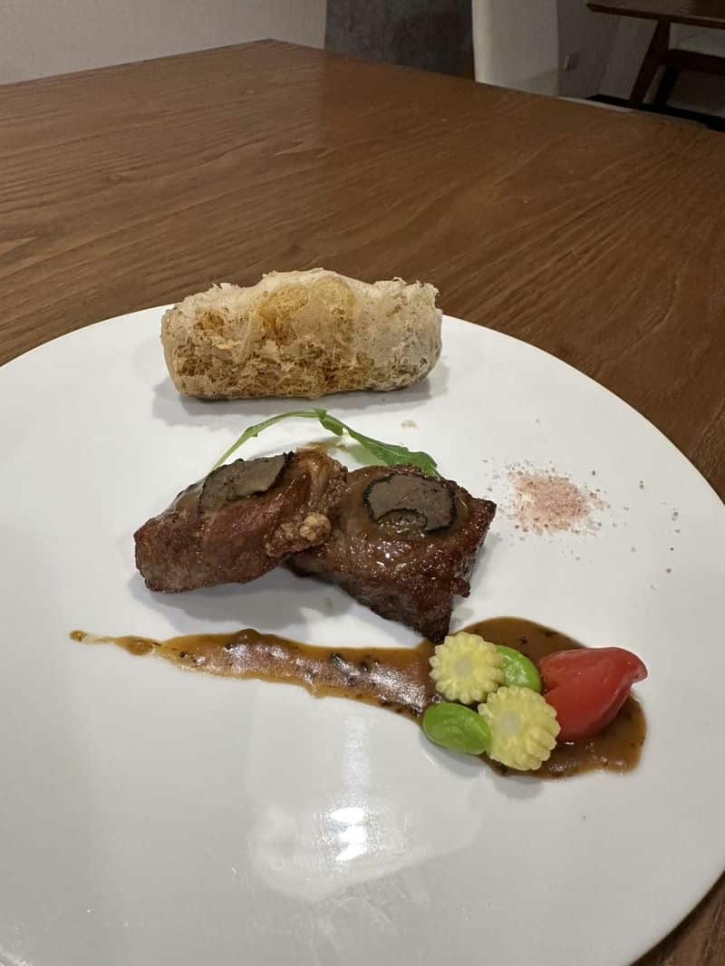 那天晚上的燭光晚餐,簡直是藝術品。每一道菜上桌都像一幅畫,從前菜到主食,食材的選擇和烹調手法都非常講究。我平常不太敢吃太油膩的料理,但三餐四季的主廚竟然能把 Fine Dining 做到如此精緻又兼顧健康,讓我在享受美食的同時,完全沒有負擔。我記得有一道魚料理,魚肉鮮嫩多汁,搭配清爽的醬汁,真的讓人回味無窮。餐點不只美味,份量也很適中,感覺得到滿滿的用心,連這頓燭光晚餐的每一個小細節,都完美到不行。