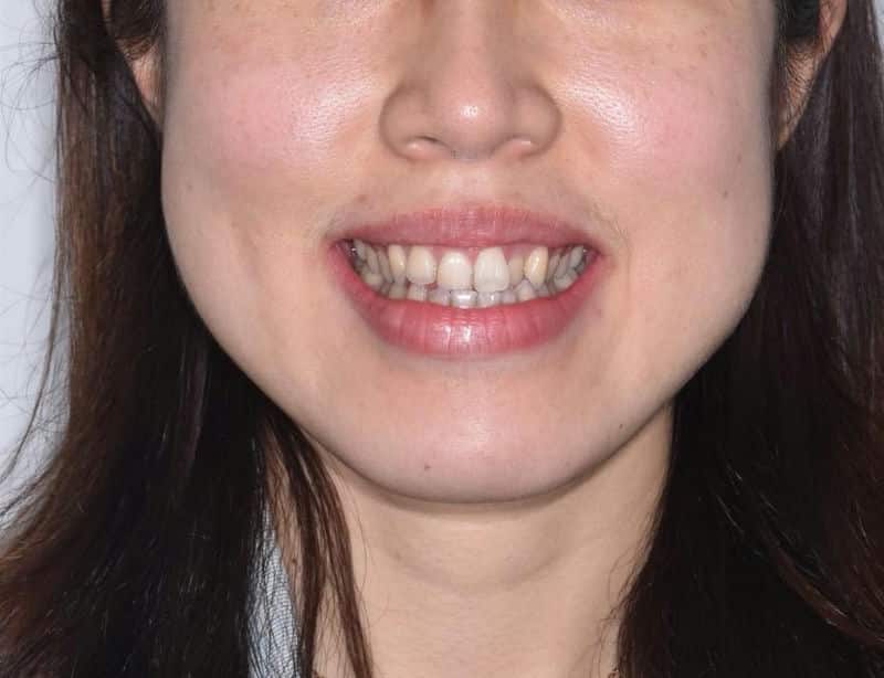在矯正的過程中,醫師會定期追蹤她的進度,並根據她的需要調整矯正計畫。這種量身打造的個人化服務,讓她感受到無比的安心與專業。隨著牙齒逐漸變整齊,她的臉型也開始改善,國字臉不再那麼明顯。