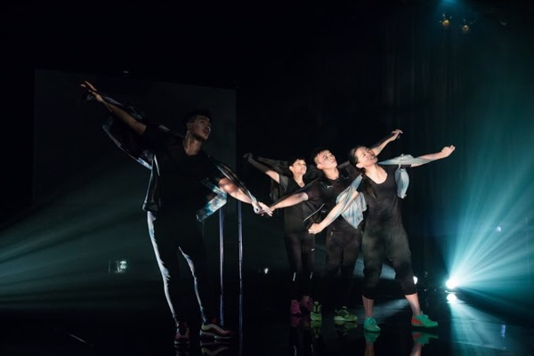 劇名叫《游泳池(沒水)》,這個游泳池的意象要怎麼營造?「我用黑色的鏡面舞台來呈現,黑色鏡面遠看很現代,很奢華,我覺得很有豪華游泳池的味道。」她說:「我一直很喜歡寫意的舞台,讓演員用動作來轉換空間。」但舞台並不純然是游泳池,有時它是,有時它不是。