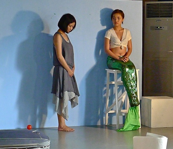 我也很喜歡謝宛諭的一些設計,她主演的是第二段故事,選取的文本是杏林子的《看雲》,對杏林子身體上的不方便,謝宛諭覺得它雖然是一種限制,卻也可以成為一種驕傲,所以她設計了美人魚的造型。