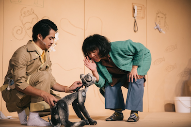 物件的使用,本來就是無獨有偶的專長,在這齣戲裡當然也隨處可見,例如,吸塵器除了是吸塵器外,它還是洋子撞爛的保持捷跑車,也可以變成洋子坐的掛有點滴袋的輪椅,真是神乎其技。