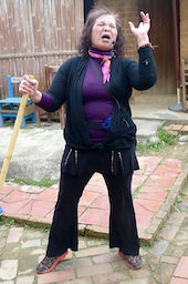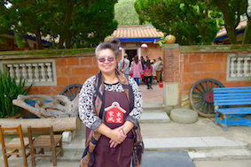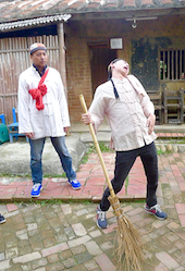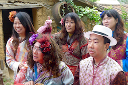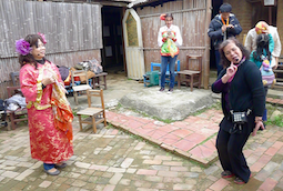 於是,她找了一大堆戲服,也從社區居民裡找了比較會演戲的人擔任指導員,然後帶著一車車遊客在這裡演戲,先教再演,還拍劇照及影片,由於劇情搞笑(最受歡迎的是相親爆笑戲),遊客很愛演,也演得很樂。