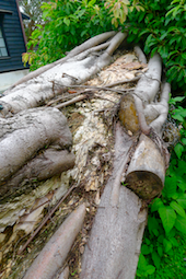 「樹是去年兩個大颱風吹倒的。」山腳社區總幹事黃增禎說:「第一次沒倒,第二次終於倒了。」