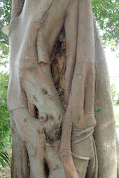 雀榕有「森林中的流氓」之稱,我個比更喜歡稱之為「森林中的恐怖份子」,它的氣生根發達,當種子落在別的樹上時,就會用氣生根像巨蠎一樣把這棵樹纏勒至死,占用其地盤。