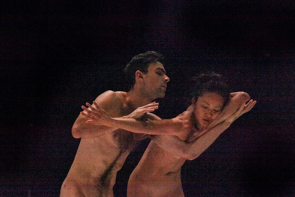 這支舞作另一個特點是兩位舞者全程全裸上陣,「其實一開始並沒有全裸的想法。」李貞威說:「作品發展過程中,慢慢發現,這是一個可以支持我們表演形式的表現方式。」