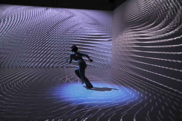 面 面3公尺高的螢幕在空間中游走,呈現我腦海裡夢的畫面。」
