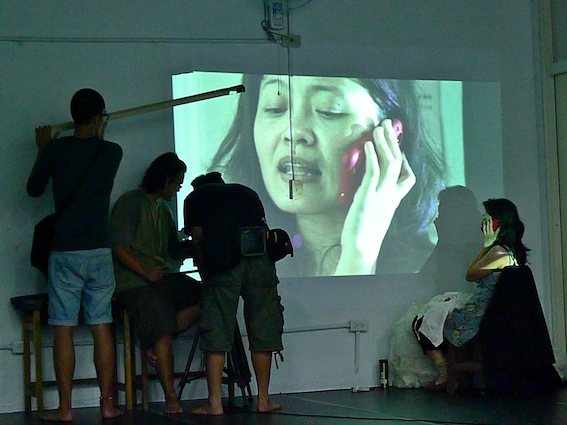 除了看劉淑娟飆演技外,這齣戲另外值得一觀的是影像,當2008年《我睡去》第一次演出時,劉淑娟已經在戲裡加入了投影這個影像元素,今年再演,她的心更大,她用了現在很流行的「現場攝影」手法,讓影像更融入表演中。