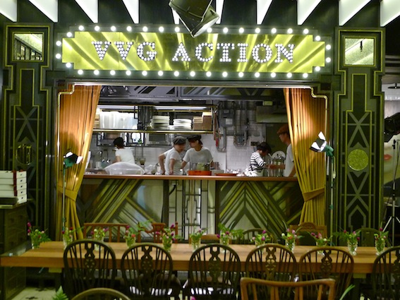 走在今天開幕的誠品松菸店地下二樓,就在誠品電影院邊,你可以看到好樣集團開的新店《好樣情事》,站在門口往裡看,它不像餐廳,倒像個拍片場。