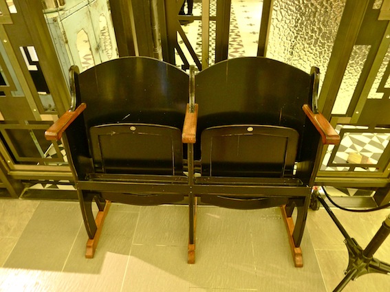 在門口站衛兵的就是片場一定有的聚光燈,左右各兩盞,與人同高,入口兩旁還各有兩張電影院裡才看得到的椅子,Grace說:「那真是電影院的椅子,在荷蘭買的。」Grace常出國,出國時的一件必做的事就是去找古董,常常一貨櫃一貨櫃地運回台灣,這些讓等候客人坐的椅子,就是飄洋過海運過來的古董。