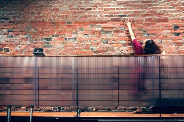 在做肩倒立時,另3個舞者都輕鬆地完成,只有沈樂一試再試,卻頂多能勉強立起來,馬上又垮掉,這樣的強烈對比,形成一種很奇妙的氣氛,氣餒的沈樂從舞台黯然退了出去。