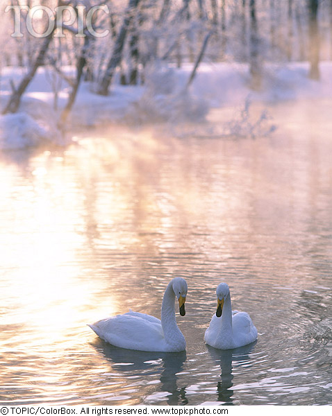 白鵝雙並呢喃語,天地悠悠,波灔輕柔,共舞韶光不記愁。
