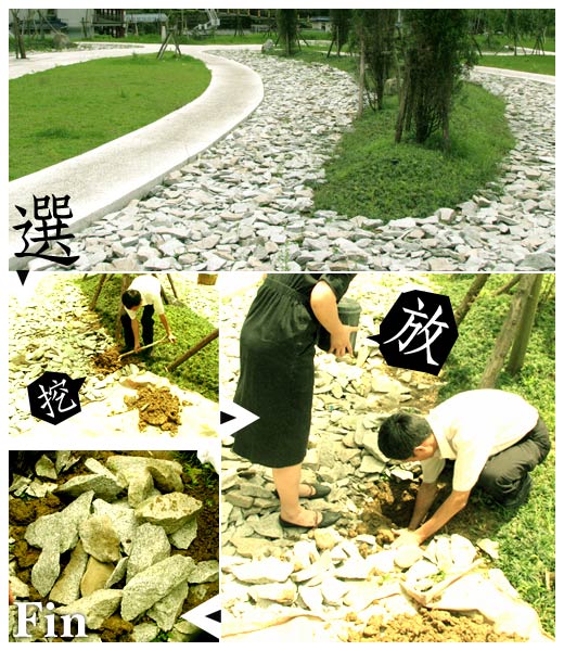 4.將上面擺滿的花崗岩碎塊移開 清出一塊空間