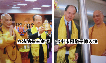 王金平上午在立法院受訪時表示,他也不知道對方是懷什麼目的,但當時是一個很神聖莊嚴的儀式,大家是點燈為國家人民祈福,就是這麼單純;他去了一下子就離開,「前後大概3、5分鐘而已」。