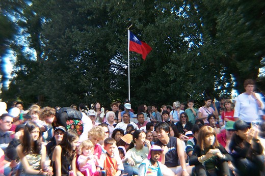 事情是這樣,華興向大會申請兩個攤位,其一安排台灣小吃,另一做為台灣文宣展示,當到達會場時只見大會給我們的只有一張HWA-HSIN SOCIETY的小看板,少了TAIWAN HWA-HSIN SOCIETY OF NEW ZEALAND的全名。沒有台灣,華興名不正言不順。龔會長立即展現明快的危機處理:一.委婉的向大會提出異議。二.協會名稱自行打印放大布置攤位。三.商借帳篷布置文宣攤位。四.緊急運送大國旗放置臺灣攤位前。五.護旗。由於海外有國旗出現易生糾紛的經驗,會長和鄉親端坐在國旗前有所準備。