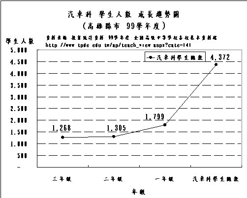 請參閱附件13:高雄市汽車科 學生人數成長趨勢圖表(99學年度)