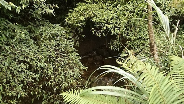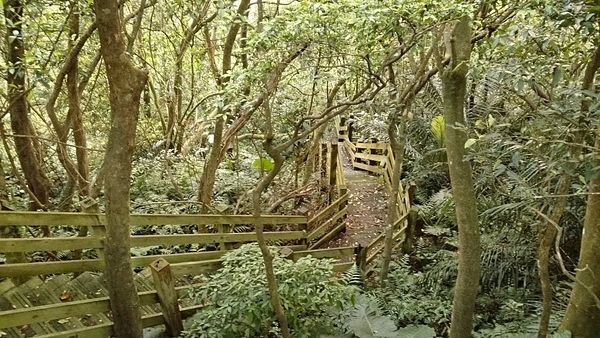 往更深處走,會發現一道可以向下通往溪流的樓梯。