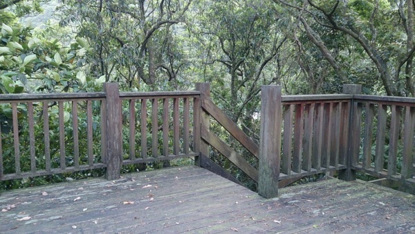 隨著旁邊的樓梯往上走,可以發現一座平台,站在上面可以更仔細的觀察溪水流動的模樣。在這裡一邊靜靜的坐在石椅上,一邊開闊自己的身心,慢慢地體驗大自然所帶來的天籟般的聲樂,彷彿被風吹動的樹葉拍打水壩的溪水,共同奏鳴出一首屬於自然的樂曲。