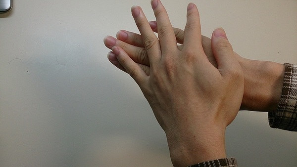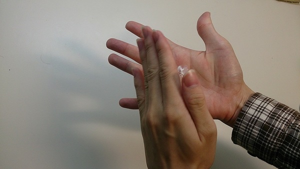 接著將剩餘的護手霜塗抹在手背上,跟剛才的方式一樣,緩緩的將護手霜塗抹均勻。
