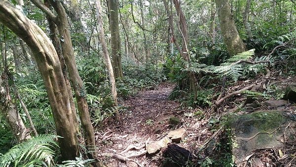 再往上走,地勢越來越高,同時周遭到處充滿了樹林。在這個步道,可以看見許多台灣欒樹和腎蕨。