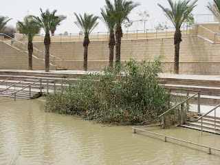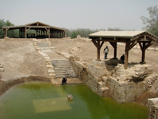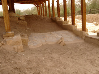 | 耶穌受洗處。現在只有古代聖洗池及教堂的地基還存留著。因為約旦河河面變窄,聖洗池已經不在直接與約旦河直接連接在一起。 |