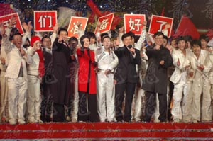 自從在日本上了飛機,我就一直在背<We are ready>的歌詞,好久沒唱都忘記了,搞的我上臺前好緊張,哈哈!可是一登上臺,看到台下那麼多社會各界的朋友們,有的揮動著奧運會的旗幟,有的高舉宣傳牌,哇!真的很激動,期盼已久的2008年終於來了呀!他們在台下和我一起在高唱著歌曲,真的由衷地要對全世界說,08年是我們的中國年,我們的奧運年,We are ready!!!