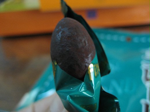 巧克力慢慢的融化之時裡頭的杏仁慢慢的在嘴裡出現了,