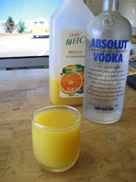 先加入伏特加,在加入柳橙汁,攪拌均勻即可
