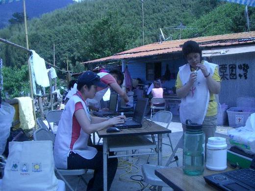 報到完畢,陳貞婷醫師和朱家慧準醫師立刻和我招呼認識,讓正處於惶恐中的我,很感激她們的主動。 陳醫師留美十餘年,目前是第二年的家醫科住院醫師,因為父親罹患肺癌而返鄉盡孝,目前父親的病況已好轉且穩定,所以化小愛為大愛,參加了這次的義診活動,而且陳醫師還允諾下個月的義診還會再度參與;為了義診的名正言順,她還特地取得台灣的醫師執照,而且成績是當次國家考試的第6名,從她對待患者時的嚴謹細心,一絲不茍,足以見其優秀,讓我們印象深刻。