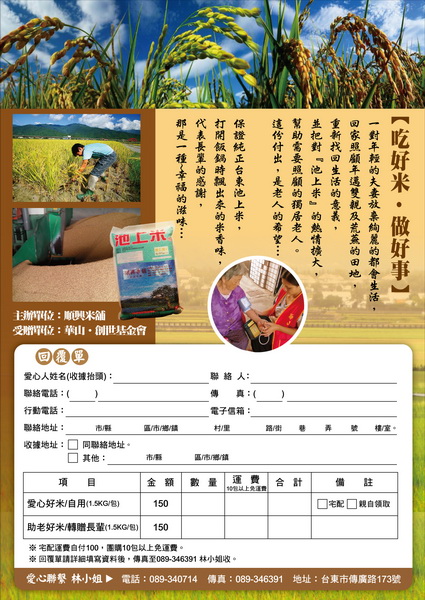 本文引用:用行動支持、用付出來關懷__吃正宗池上米、作正港的好事