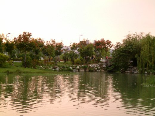 幽靜的湖面泛映著月亮的倒影,湖面上依舊瀰漫著淡淡地水氣。清風拂來還是那麼的令人沉醉。