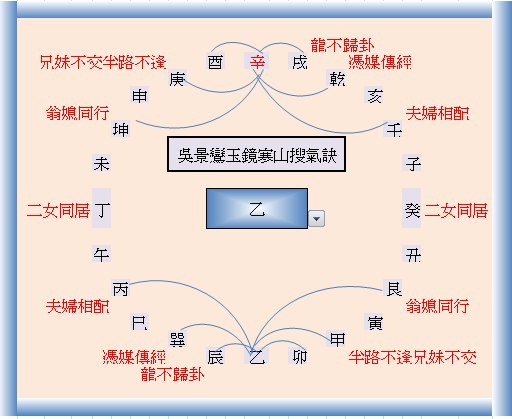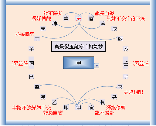 火局巽巳臨官頂体,落艮寅長生復挽丙午之氣,正旺到穴,乙丙之交現然,牝牡之歡有期,竅合辛乾壬正庫,艮寅長生會庫合先後天相見,理之在目。生寅旺午墓戌。