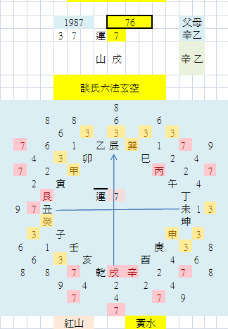 七九運,數之七九屬陽,而卦之兌離屬陰矣,上元二四運,數之二四為耦,而卦之坤巽亦屬陰,下元六八運,數之六八為耦,而卦之乾艮屬陽矣,陰陽奇偶,活活潑潑,非一例而言也亦明矣,總之陰陽卦數,得玄空六法真訣者,各有行用,有條不紊,不能絲毫假借也。世無研究者,故混雜而難分,世又有以一四七與二五八與三六九為三般卦者,有以一四七為孟,二五八為仲,三六九為季者,豈知三般卦只有一四七,而無二五八與三六九,乃指卦與數言,孟仲季之一四七與二五八與三六九,乃指九數之次序言,一實一虛,有條不紊,理數之難明于此可知,莫怪世人之難於入門也。語雲陰陽蒙憧,豈蒙憧哉,不易悟徹耳,無人指示耳。