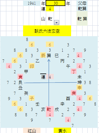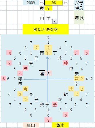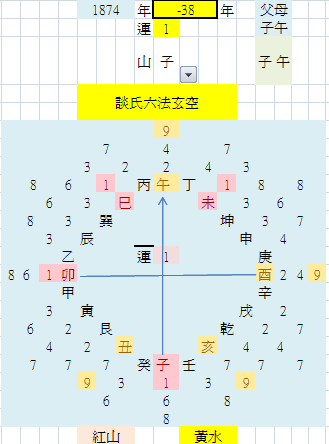 辨正各經,皆青囊之條目,六法之關鍵,首句言挨星之變化,其曰一個排來千百個者,極言卦氣之迴圈無端,非一個星辰入掌,可變成千百個也。有此一語,誤盡世人,所以世有種種挨星法,初非楊公所能逆料及之也。挨星之挨,前已注明之矣,並非入掌飛跳,乃天地自然交媾之卦位,隨後天流行之氣,配合山水動靜,陰陽虛實,以定生死,猶夏葛冬裘,隨氣變換也.跡其用法,千頭萬緒,楊公雲千百個者此也。六法各有條目,非千百而何,龍之旺不旺,水之合不合,雌雄之配不配,金龍之動不動,挨星之當運不當運,城門之言不吉,太歲之各種斷驗,皆本諸玄空卦中之星辰為主,合龍合向合水,莫不有連鎖關係,皆從玄空卦之生旺衰死中推求,合則吉,不合則凶,如一白以子為旺龍,午為旺向,離為旺水,水合三吉位者,如西亥丑三方之水,即一運之三吉位也。若今之四運,即以乾為旺龍,巽為旺向,又為旺水,子卯申三方之水,即三吉位也。六運反是,祿馬無足重輕,全以卦之生旺為主,何吉何凶,須參太歲與三合年為主,如上述之子山午向,值子年為太歲到山,旺丁,午年太歲到向旺財,申辰年合山,寅戌年合向,又如元運之生死,及流年紫白含卦等,皆太歲之一也。公位即孟仲季之分房,一刖已詳注之矣,如上述之子午,應于孟仲房,乾巽應于孟房,地如形局偏正,來脈之輕重,水法之宮位,亦皆分房之旨也。均與太歲三合,有密切關係,其曰千百個,誠千百個而有餘矣。