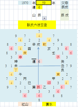 又加丑山未向,亥山巳向,收未水巳水,午峰酉峰亦是。其他各卦類推,明乎玄空大卦之位次用之法自明矣。