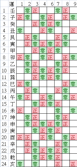 玄空六法各運零正圖(廿四山與八個運零正表)