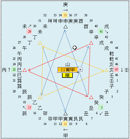 子山:天壘、太陰、破軍、陽光子、帝座。