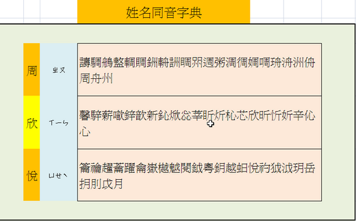 周欣悅.. 姓名同音字典